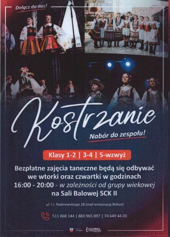 Masz w domu pokłady niespożytej energii? A może Twoja pociecha uwielbia muzykę i ruch? Zespół Pieśni i Tańca "Kostrzanie" otwiera swoje drzwi i zaprasza na wielką przygodę!